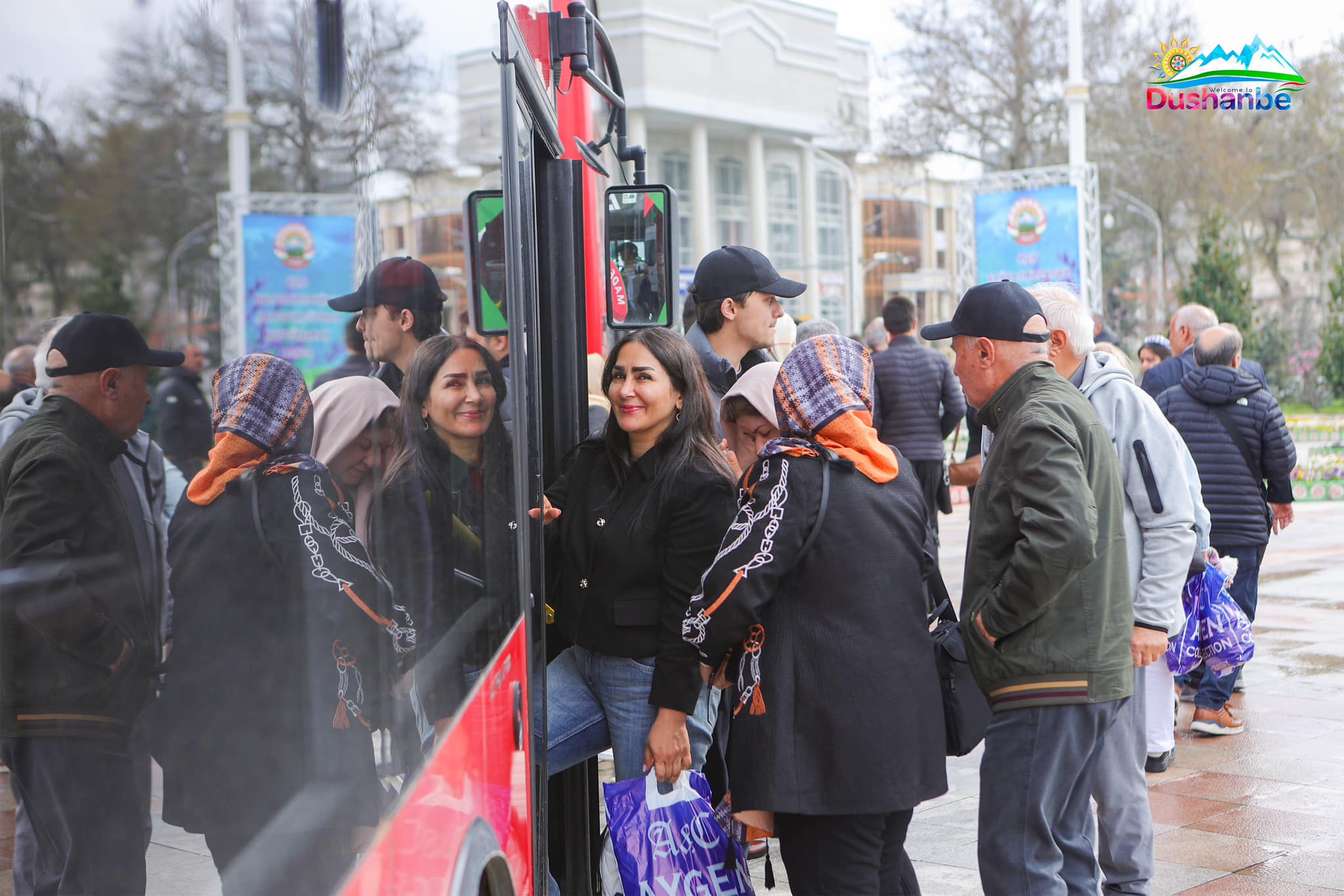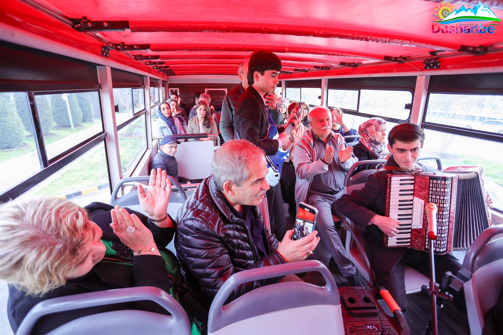 Барои болидахотирии иштирокчиёни хатсайр автобусҳои дуошёнаи шаҳрӣ ва навозандагону ҳунармандон ҷалб карда шуданд.